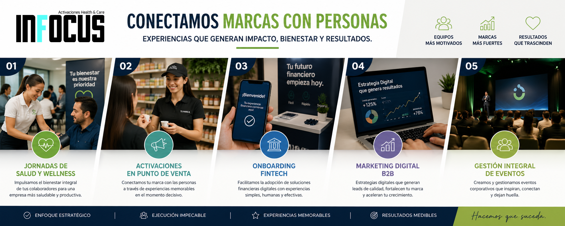 En InFocusMx, Diseñamos e Implementamos Jornadas de Salud a la medida dentro de empresas.